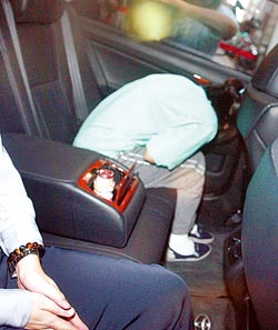 臺(tái)灣檢方特偵組14日提訊在押的前陳水扁任內(nèi)辦公室出納陳鎮(zhèn)慧及陳水扁辦公室主任林德訓(xùn)厘清案情;陳鎮(zhèn)慧還押看守所時(shí)在車內(nèi)彎腰閃避媒體鏡頭。(圖:臺(tái)灣《中國時(shí)報(bào)》)