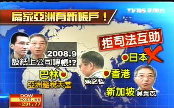據(jù)臺(tái)灣TVBS報(bào)道,或許該這么形容,扁家的國(guó)際觀、在資金處理上顯露無(wú)遺。因?yàn)槌艘哑毓獾?間紙上公司,9月初艾格蒙聯(lián)盟又查出,扁家在亞洲有一個(gè)未曝光的賬戶,而且不是在新加坡,也排除了不肯提供司法互助數(shù)據(jù)的日本,除了香港,另一個(gè)可能就是亞洲知名的避稅天堂巴林。