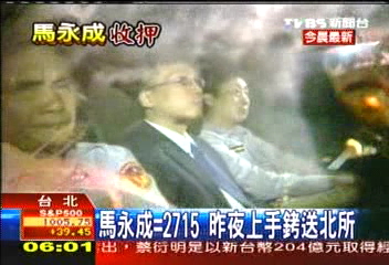 據(jù)臺(tái)灣TVBS報(bào)道,檢方查出,馬永成涉嫌協(xié)助扁家詐領(lǐng)千萬元新臺(tái)幣的機(jī)要費(fèi),觸犯侵占和詐取公有財(cái)務(wù)罪,涉嫌重大且有串證之虞,聲押獲準(zhǔn)。馬永成進(jìn)入看守所后將沒有名字,編號(hào)2715,與一名偽造文書的嫌犯同牢房。