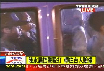 陳水扁今天深夜10點45分左右坐車前往臺大醫(yī)院驗傷(臺灣TVBS圖)
