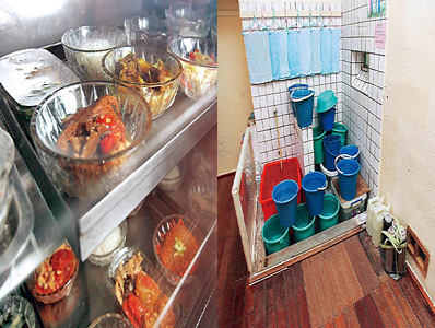 每天午、晚餐固定的三菜一湯,不管葷素或菜色,阿扁幾乎都吃光光,只差沒有把菜湯汁喝掉。這只是菜、湯而已,飯量更是不得了,所方不管收容人的飯量大小,一餐給的干飯就是制式的一碗,相當于一般泡面碗,是家用飯碗的二碗半至三碗的量,而阿扁每餐吃到碗底朝天。