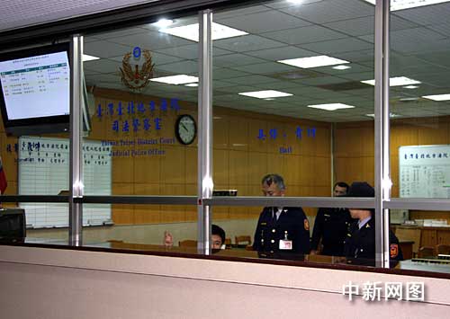 深夜的臺北地方法院司法警察室燈火通明。由于該室的收受人犯告示近期已由壁榜手寫改為電視屏幕顯示,因此如陳水扁最終被裁定羈押,結(jié)果會在電視屏幕上顯示出來。如是具保釋放,也會在這里辦理具保手續(xù)。