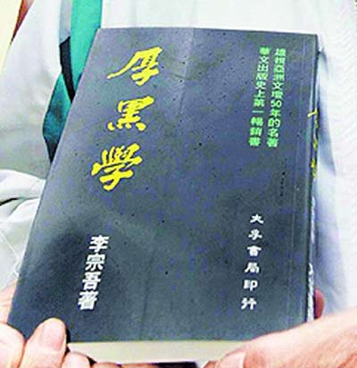 《厚黑學(xué)》主要是論述中國歷史上英雄豪杰之所以成功,無非“面厚、心黑”。國民黨“立委”得知扁收到《厚黑學(xué)》后多所嘲諷,黨團(tuán)書記長張碩文說:“阿扁其實(shí)就是最好的《厚黑學(xué)》,前無古人、后無來者,他是最好的活教材!