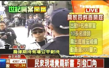 中新網(wǎng)1月19日電 據(jù)臺灣TVBS報道,19日上午9點半,針對龍?zhí)逗湍细鄱蟊装高M行準(zhǔn)備程序庭,6名檢方激戰(zhàn)3位律師。一開庭扁律師提出三策略,卻全遭法官蔡守訓(xùn)當(dāng)庭駁回,后來檢察官當(dāng)庭追加罪嫌,引發(fā)律師不滿,現(xiàn)場爆發(fā)雙方口角。