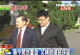 中新網(wǎng)2月1日電 據(jù)臺(tái)灣TVBS報(bào)道,陳水扁女兒陳幸妤31日只身前往美國,今天(1日)上午陳水扁女婿趙建銘到看守所探視陳水扁,不過對(duì)于妻子出境所為何事,趙建銘面對(duì)提問,則沒有回應(yīng)。