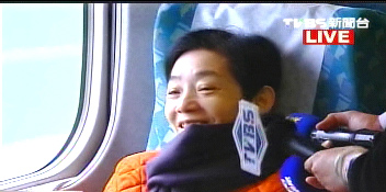 吳淑珍上一次離開臺北應該是3年前陳致中要到黃睿靚家下聘時,今天第一次搭乘高鐵,吳淑珍臉色有些蒼白,不過看起來神情相當愉悅,搭乘高鐵約兩個小時車程中,難得和記者面對面聊天。