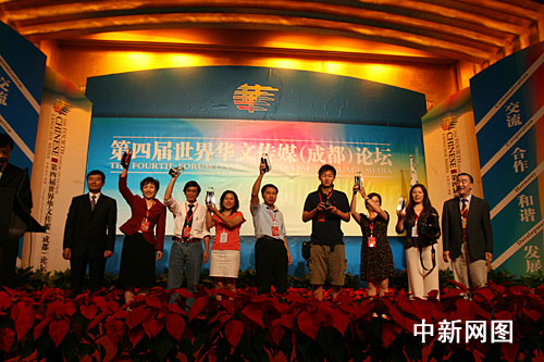 [主持人]: 獲得傳媒機(jī)構(gòu)優(yōu)秀獎的有:關(guān)西華文時報(日本)、美中晚報(美國)、亞省時報(美國)