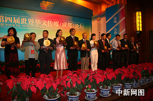 [主持人]: 獲得傳媒機(jī)構(gòu)貢獻(xiàn)獎的有:美國僑報、新加坡聯(lián)合早報、香港鳳凰衛(wèi)視