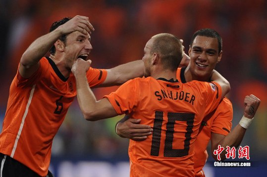 當(dāng)兩隊(duì)再度上場(chǎng),在很多人的心里,眼前的比賽已經(jīng)幾乎沒有懸念,很少有人能逆轉(zhuǎn)占據(jù)領(lǐng)先的“五星巴西”。剛剛過去的45分鐘里,在巴西人圓熟又實(shí)用的打法面前,荷蘭人甚至難有威脅,尖刀式人物羅本已經(jīng)被牢牢盯死,“橙衣軍團(tuán)”還有誰能改變局面——沒人會(huì)想到斯內(nèi)德。
