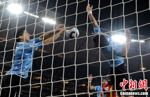 中新網(wǎng)7月3日電 在今天凌晨進行的一場世界杯1/4決賽中,烏拉圭點球淘汰加納,40年后再度晉級四強。而在加時賽中場階段用一個“排球動作”幫助球隊擋出加納隊射門、被紅牌罰下的蘇亞雷斯,堪稱最大功臣。