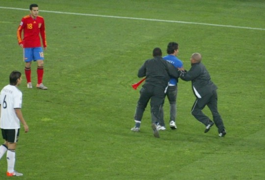 中新網(wǎng)7月8日電 世界杯安保問題在遇挑戰(zhàn),在北京時間8日凌晨進行的德國和西班牙的半決賽中,一名球迷竟然沖入球場,導致比賽被迫中斷。