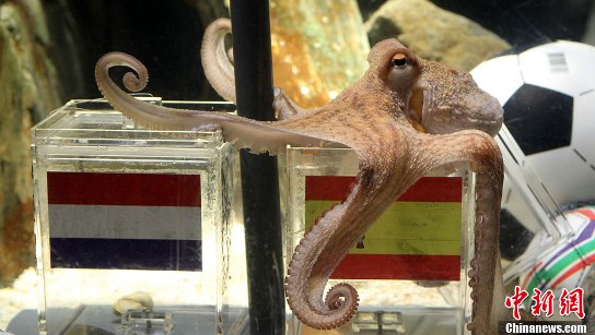 荷蘭隊與西班牙隊的決賽,也被中國網(wǎng)友認(rèn)為是“未來帝”和章魚哥的對決,不過章魚保羅完勝對手:西班牙隊如愿奪冠,而斯內(nèi)德根本沒有進(jìn)球。