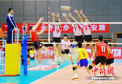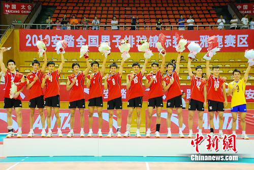 中新網(wǎng)太倉7月19日電(張達(dá))2010年安踏全國男子排球錦標(biāo)賽18日在太倉市體育館完成了最后一日的比賽。在江蘇隊(duì)與河南隊(duì)的冠亞軍決賽中,江蘇隊(duì)在先失兩局的情況下,連扳三局,實(shí)現(xiàn)大逆轉(zhuǎn),奪得冠軍。