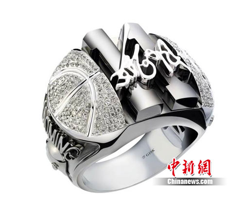 這枚戴夢得“至尊鉆戒”鑲嵌有248顆鉆石,表面是籃球紋樣點綴晶瑩的鉆石,中部用黑金凸起的色塊寫就姚明在休斯頓火箭隊的隊服號碼,其上再鐫刻姚敏名字的手寫體,戒指側(cè)面還有姚明的頭像和英文“YaoMing”的字樣。