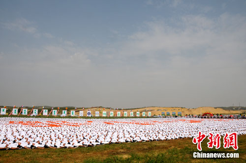 本次“萬人多米諾”活動,以“擁抱自然,親吻草原”為主題,旨在宣揚和倡導(dǎo)團結(jié)向上的精神和綠色、環(huán)保、低碳的生活理念。來自鄂爾多斯市多所中學(xué)的學(xué)生和東勝區(qū)直各部門的在職干部10267人參加了今天的活動。他們按陣形和服裝顏色排列組成“鄂爾多斯美”的圖案,其中“美”字是用蒙文組成的,充分體現(xiàn)了民族特色。