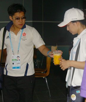 昨天下午新加坡烈日當(dāng)頭,氣溫很高,在活動(dòng)進(jìn)行到一半時(shí),體貼的霍啟剛還為郭晶晶買來(lái)了冰鎮(zhèn)飲料,并在活動(dòng)結(jié)束時(shí)大方地來(lái)了個(gè)單獨(dú)合影。