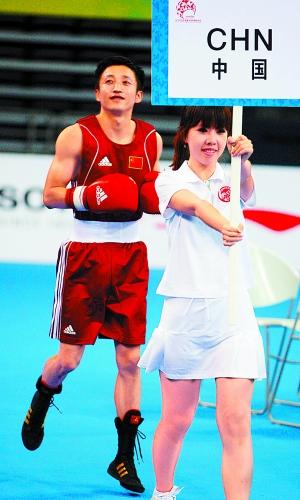 武搏運(yùn)動(dòng)會(huì)拳擊比賽昨晚在奧體中心打響。拳擊項(xiàng)目形象大使、北京奧運(yùn)會(huì)冠軍鄒市明亮相男子46至49公斤級(jí)1/4決賽,以13比1的巨大優(yōu)勢(shì)擊敗一名波蘭選手挺進(jìn)半決賽。別看小鄒在拳臺(tái)上揮拳虎虎生風(fēng),但當(dāng)記者提起前來為他助陣的未婚妻時(shí),“拳王”竟然羞紅了臉。