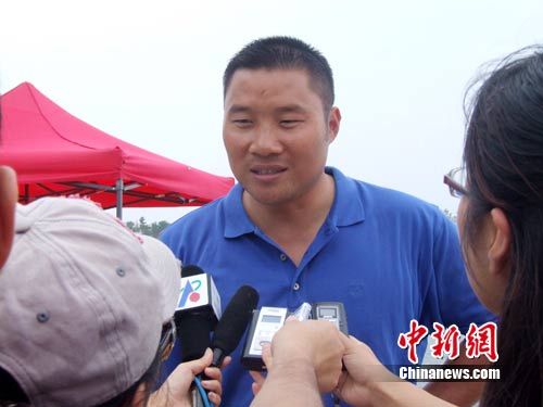 墨鏡、藍(lán)T、褐色短褲,還別了對講機,等他拿出對講機開始說話的時候,酷的就像007!斑@次我是以浙江省水上運動管理中心工作人員的身份率隊征戰(zhàn)水運會的。”孟關(guān)良笑著說。