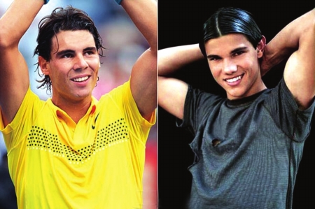 純樸的大男孩氣質(zhì),黝黑的皮膚中帶有一絲野性,一身完美的暴力肌肉,憑借在《暮光之城》中飾演狼人雅各布,泰勒·洛特納已經(jīng)紅透半邊天,他的戲份也一部多過一部。網(wǎng)球迷也驚喜地發(fā)現(xiàn),不論是身材還是氣質(zhì),他都和西班牙天王納達爾很神似,甚至兩人的性格都有點像:憨厚又深情。雖然已經(jīng)貴為世界第一,納達爾的女友依舊是自己青梅竹馬的玩伴,兩人穿著“學(xué)生裝”逛街的照片簡直像雅各布和貝拉的劇照!赌汗庵恰穭〗M如果想票房再上一個檔次,不妨考慮讓納達爾兩口子加盟吧。
