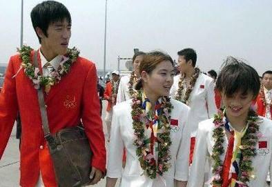 吳敏霞、李婷:2004年,中國(guó)內(nèi)地奧運(yùn)金牌代表團(tuán)香港行期間,劉翔與跳水名將吳敏霞、李婷有說(shuō)有笑的走出香港國(guó)際機(jī)場(chǎng)。