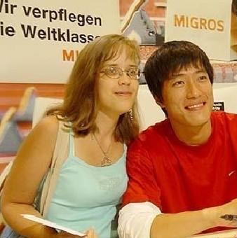劉翔與外國女翔迷:2005年8月17日,中國的奧運冠軍劉翔和美國的百米飛人格林一起,來到蘇黎世一家名為MIGROSCITY的商場為市民現(xiàn)場簽名。在前面期間,一位劉翔重視的粉絲們有幸坐在身邊,將這最幸福的一刻定格下來。