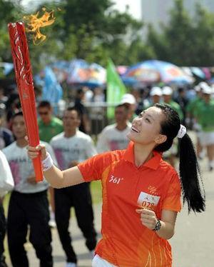 譚晶在亞運(yùn)火炬?zhèn)鬟f深圳站中(資料圖)