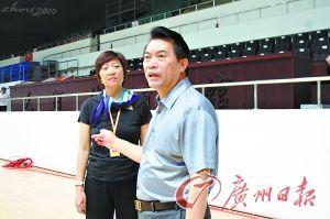 國家體育總局乒羽中心主任劉鳳巖(右)與天河體育館團隊主任關渭貞在演練現場