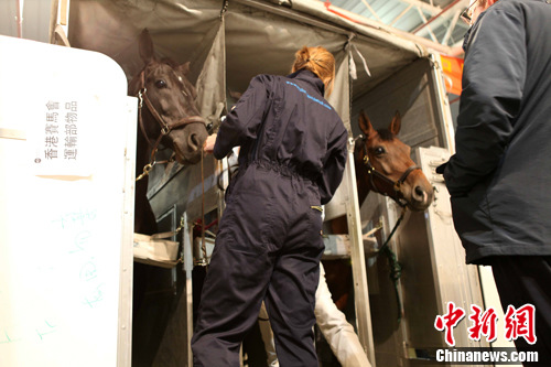 中新網(wǎng)廣州11月4日電 (唐貴江 張瑞)記者今日從廣州白云出入境邊防檢查站獲悉,廣州亞運會馬術(shù)比賽部分馬匹于11月4日凌晨從廣州白云國際機場入境,共有9匹賽馬和6名韓國籍馬童一同抵達廣州。