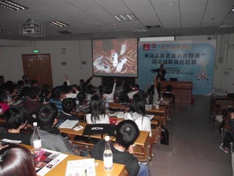 31日下午,所有學(xué)員返回廣州,在中山醫(yī)學(xué)院進行了攝影強化培訓(xùn)。資深攝影記者為通訊社同學(xué)進行了攝影技巧培訓(xùn),現(xiàn)場氣氛十分熱烈。