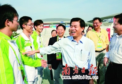 昨日,在廣州亞運(yùn)會即將開幕前夕,廣東省長、省“三會”籌辦工作領(lǐng)導(dǎo)小組組長黃華華率亞組委、省“三會”辦、省政府辦公廳、省體育局等有關(guān)部門負(fù)責(zé)同志,到奧體中心、海心沙和亞運(yùn)會、亞殘運(yùn)會總指揮部現(xiàn)場考察,檢查亞運(yùn)場館運(yùn)行團(tuán)隊(duì)及指揮中心運(yùn)行情況,要求更加細(xì)致、更加高效地推動各項(xiàng)籌辦工作的落實(shí),確保廣州亞運(yùn)會、亞殘運(yùn)會順利成功舉辦。在聽取了開閉幕式運(yùn)行團(tuán)隊(duì)、奧體中心游泳館團(tuán)隊(duì)、奧體中心網(wǎng)球館團(tuán)隊(duì)和奧體中心場團(tuán)隊(duì)情況匯報(bào)后,黃華華作了重要講話。張廣寧、林木聲、萬慶良等省市領(lǐng)導(dǎo)陪同考察和檢查。