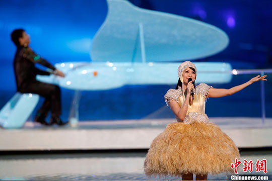 在這一段節(jié)目中,郎朗與章子怡爭(zhēng)做主角,相互“飆歌”。這首美妙的音樂(lè)名為《時(shí)光》,浪漫的旋律如夢(mèng)似幻,郎朗指下藍(lán)色的鋼琴變成了一個(gè)時(shí)間的機(jī)器,隨著音樂(lè)穿越時(shí)空。鋼琴演奏與章子怡悅耳的演唱交響在一起,花樣游泳演員伴著她的歌聲在水中翩翩起舞,擺出各種各樣美麗的花朵造型。