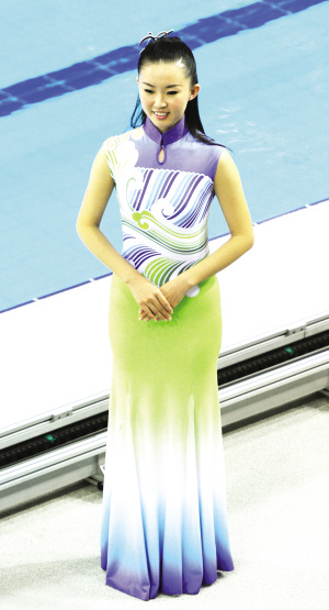 同其他大型活動(dòng)的禮服不同,“行云流水”的面料有了突破——用泳衣和體操服那樣的彈性面料,代替了傳統(tǒng)的綢緞面料。與此同時(shí),這樣的面料,不需要太多的剪裁,有了彈性,各種體型的禮儀小姐穿上去都合適。不過彈性面料也有不少,有些面料容易褪色,有些面料做出來顏色有偏差。最終,“行云流水”的面料選為滌綸。