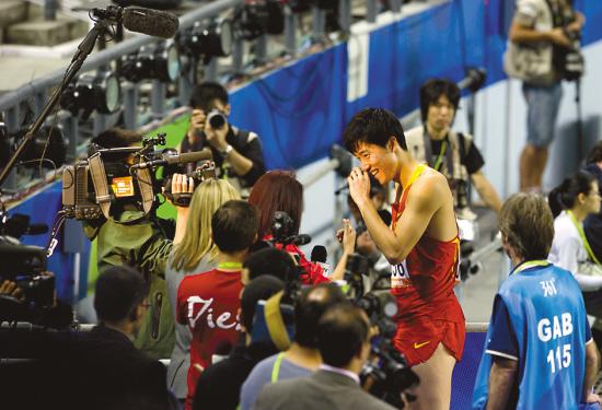 16時45分,奧林匹克中心文字記者工作間,一角的空地上站著幾位拿著手機(jī)連線的記者,“劉翔”之聲不絕于耳。