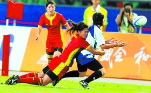 中國(guó)隊(duì)員孫婷婷死死抱住球,敏捷地閃開強(qiáng)壯的“追兵”,一路狂奔沖過底線。只要她將球按在地上,中國(guó)隊(duì)就能在最后時(shí)刻反超對(duì)手,奪得亞運(yùn)會(huì)女子7人制橄欖球的冠軍。就在全場(chǎng)觀眾開始振臂歡呼時(shí),孫婷婷手中的球卻掉落在地——根據(jù)規(guī)則,此球不得分。中國(guó)隊(duì)今天最終以14比17不敵哈薩克斯坦隊(duì),獲得亞軍。