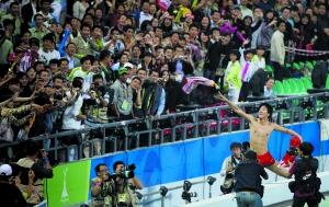 劉翔把上衣拋向看臺(tái)。
