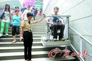 目前已經(jīng)完成天河購物城、北京路廣百商場、上下九步行街、友誼環(huán)市東店等購物熱點無障礙設(shè)施改造,包括增加低位收銀臺、設(shè)置無障礙電梯等。其中,北京路廣百商場還專門在南門增設(shè)了無障礙坡道和樓梯升降機。