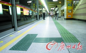 目前廣州市已經(jīng)完成全部亞運城運動員村、廣東奧體中心總平面整體改造工程及19個亞殘運會場館的無障礙設(shè)施建設(shè)(其中比賽場館13個,訓(xùn)練場館6個);完成新建和改造盲道1129.34公里,坡道11827個,設(shè)置了1000套盲人過街音響信號裝置;完成41個社區(qū)和113戶家庭無障礙設(shè)施改造;組織實施了公園、商場、接待酒店等公共場所和30多個宗教場所無障礙設(shè)施改造,尤其地鐵幾乎每個車站至少配有兩個出入口設(shè)置盲道。