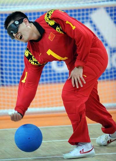 盲人門球運動是根據(jù)盲人視力障礙特點而專門設(shè)計的一項集體球類項目,它需要運動員根據(jù)觸覺來確定自己在場上的位置、方向;根據(jù)聽覺來判斷球的方向、速度,從而迅速做出反應(yīng)。這項運動的形式適合于盲人視覺功能障礙的局限,集安全性、競技性、觀賞性于一體,既突出運動員個人技術(shù)又強調(diào)團隊配合。有人作了這樣的比喻:“盲人門球運動是一項球似籃球,球門似足球,而擲球動作像保齡球的運動! (來源: 亞殘運會官方網(wǎng)站)