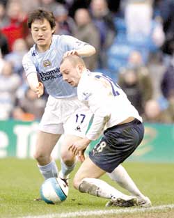 曼城昨天終于迎來今年主場首勝,2比1戰(zhàn)勝熱刺,孫繼海在終場前替補出場,差點奉獻一次助攻。