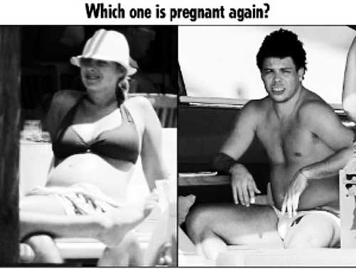 路易斯目前正懷著他和小雷的第2個(gè)孩子,挺著肚子大腹便便的躺在海灘上。受傷后身材肥胖嚴(yán)重走形的大羅也挺著個(gè)大肚子,于是《太陽(yáng)報(bào)》將兩人的照片放在一起比對(duì)說(shuō):誰(shuí)看上去更像是懷孕了呢?