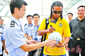 羅納爾迪尼奧在白云機(jī)場為工作人員簽名。