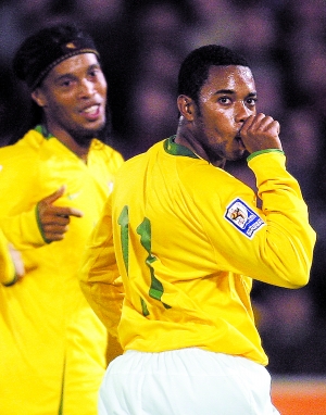 本場比賽從排兵布陣上就可以看出巴西隊拿出了真本事。鋒線排出目前所能排出的最強組合,小羅、羅比尼奧、法比亞諾組成三叉戟。鄧加把最大的希望寄托在羅羅組合上,尤其是剛剛以4200萬歐元的身價轉(zhuǎn)會到曼城的羅比尼奧。在最近的訓(xùn)練中,鄧加和羅比尼奧反復(fù)交談,很顯然,羅比尼奧是鄧加的關(guān)鍵一步棋。小羅在AC米蘭的聯(lián)賽首戰(zhàn)表現(xiàn)出色,贏得滿堂喝彩,加之卡卡因傷缺席,小羅回到首發(fā)陣容也不意外,這是他時隔一年后再度代表巴西國家隊出場。賽前,小羅表示自己希望和羅比尼奧搭檔:“與羅比尼奧踢球挺好的,因為他反應(yīng)和思考特別快!倍鲙涏嚰右仓v道:“小羅能頂在前面,在前場左路,這也是他發(fā)揮最出色的一個位置。他和羅比尼奧可以一起首發(fā),他們都是能獨自解決比賽的球員。”