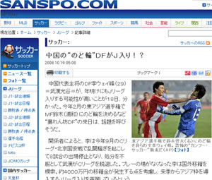 李瑋鋒即將加盟日本J聯(lián)賽的消息最早見(jiàn)諸于17日的日本雅虎體育。當(dāng)時(shí),雅虎體育就以“功夫足球?qū)⒌顷懭毡?”為題,曝出了中國(guó)國(guó)家隊(duì)主力李瑋鋒即有可能在明年初加盟J聯(lián)賽,并稱李瑋鋒“作為最強(qiáng)最兇悍的后衛(wèi),堪稱中國(guó)功夫足球的代名詞”。19日,日本產(chǎn)經(jīng)體育等多家媒體進(jìn)一步證實(shí)了這一消息,并稱“動(dòng)粗小子”李瑋鋒的到來(lái)不 啻為一場(chǎng)“恐怖襲擊”。