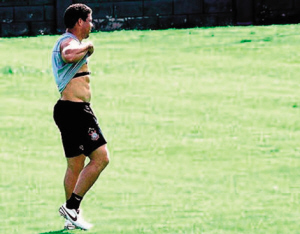羅納爾多知道訓(xùn)練場(chǎng)邊有很多記者,在過(guò)去,他對(duì)記者的鏡頭十分防備,絕不輕易讓他們拍到自己發(fā)福的身體,但這一次卻十分例外。他撩起訓(xùn)練衫,一臉愜意,然后叫著:“拍這里,看,平的!”在科林蒂安,羅納爾多的心情變化是明顯的。