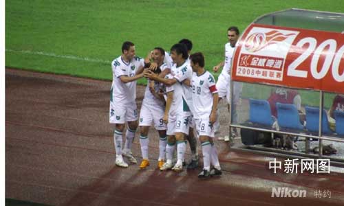 上半場第17分鐘,曹軒左路得球一腳直傳,閻嵩跟上將皮球傳中,中路的蔡楚川高高躍起,將球頂入長春亞泰隊(duì)的大門,浙江綠城終于收獲首粒進(jìn)球。2分鐘后,長春隊(duì)獲得一次反擊良機(jī),但達(dá)扎吉禁區(qū)內(nèi)得球后起腳射門,球被姜波撲出底線。