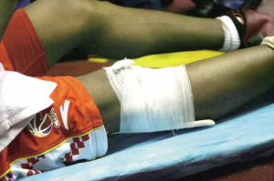 據(jù)夏醫(yī)師介紹,霍斯金的傷和姚明、劉翔一樣,都屬于慢性累積性損傷,也就是疲勞性骨折!盎羲菇鸬南ドw其實早就有問題,髕腱慢性撕裂傷。”前天比賽時,他即使沒和別人發(fā)生碰撞,落地緩沖那一下的力量,也足以造成創(chuàng)傷。“骨折后髕骨碎成了三四個小骨塊,而且髕腱已經(jīng)散開變成馬尾一樣,一束一束的!笔中g(shù)用的是新技術(shù),醫(yī)生用三顆帶縫線的金屬鉚釘,把小骨塊重新接合,然后把髕腱上老疤痕剔掉,用高強度的編織線,一共8股,把髕腱重新編織起來,修復(fù)并加強了強度。