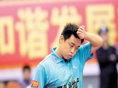 賽后,壓力重重的王皓郁悶地再次低著頭走回休息區(qū)。比賽結(jié)束之后,因醉酒事件成為焦點(diǎn)人物的王 皓接受采訪時(shí)表示:“還是很想打好這場比賽,可是由于種種原因受到了一些影響。心理上承受著一定的 壓力,造成比賽中發(fā)揮也出現(xiàn)了問題!倍(dāng)記者問道是不是因?yàn)樽砭剖录绊懥藸顟B(tài)時(shí),王皓則不愿意 透露更多詳情模糊地答道:“關(guān)于這個(gè)事情,教練已經(jīng)做過解釋了!钡谝慌缘耐鯘幊芍槍τ谌魏 的問題都是閉口不談,急急忙忙地離開賽場,手機(jī)也一直沒人接聽。本報(bào)記者 黃德強(qiáng)