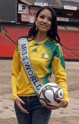 中新網(wǎng)11月21日電 當(dāng)?shù)貢r(shí)間22日,2009年聯(lián)合會(huì)杯抽簽儀式將在南非城市約翰內(nèi)斯堡舉行。包括世界小姐張梓琳在內(nèi)的各國(guó)佳麗應(yīng)邀前往,在約翰內(nèi)斯堡的埃利斯球場(chǎng)大秀球技。