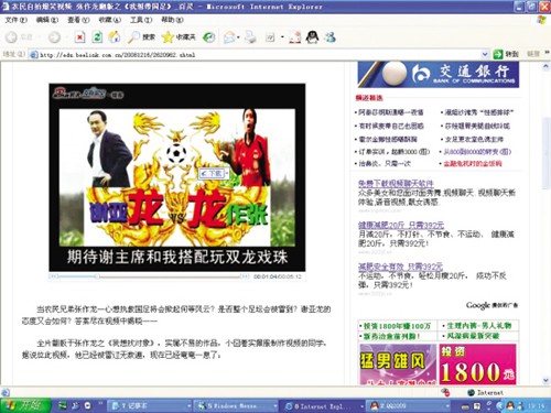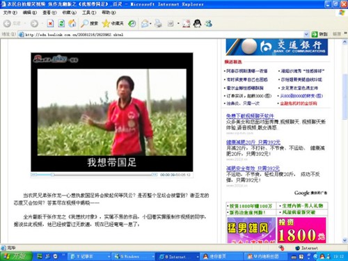 新快報記者在新浪播客欣賞到這首出爐不久的MV,它翻版于張作龍之《我想找對象》,說的是一個叫張作龍的農(nóng)民兄弟主動請纓當(dāng)國足的主教練,他自稱從小鍛煉了發(fā)達(dá)的叉腰肌,腿上功夫也了得,希望能與謝亞龍合作為中國足球效命。而他上任后的絕招是把中國功夫帶入球場,保證無往不勝。MV對謝亞龍、球場暴力以及黑哨等作了批評。