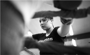 謝莉的19歲生日還差兩周,她的對手26歲,報(bào)名體重只比她重2公斤,看起來卻遠(yuǎn)遠(yuǎn)比謝莉壯得多也高得多。霍克看到她脖子上和手臂上還有文身,好像在監(jiān)獄待過。和電影里伊斯特伍德飾演的教練一樣,霍克信奉的第一信條也是“保護(hù)自己永遠(yuǎn)是第一位的”,于是他找到了拳賽組織者。